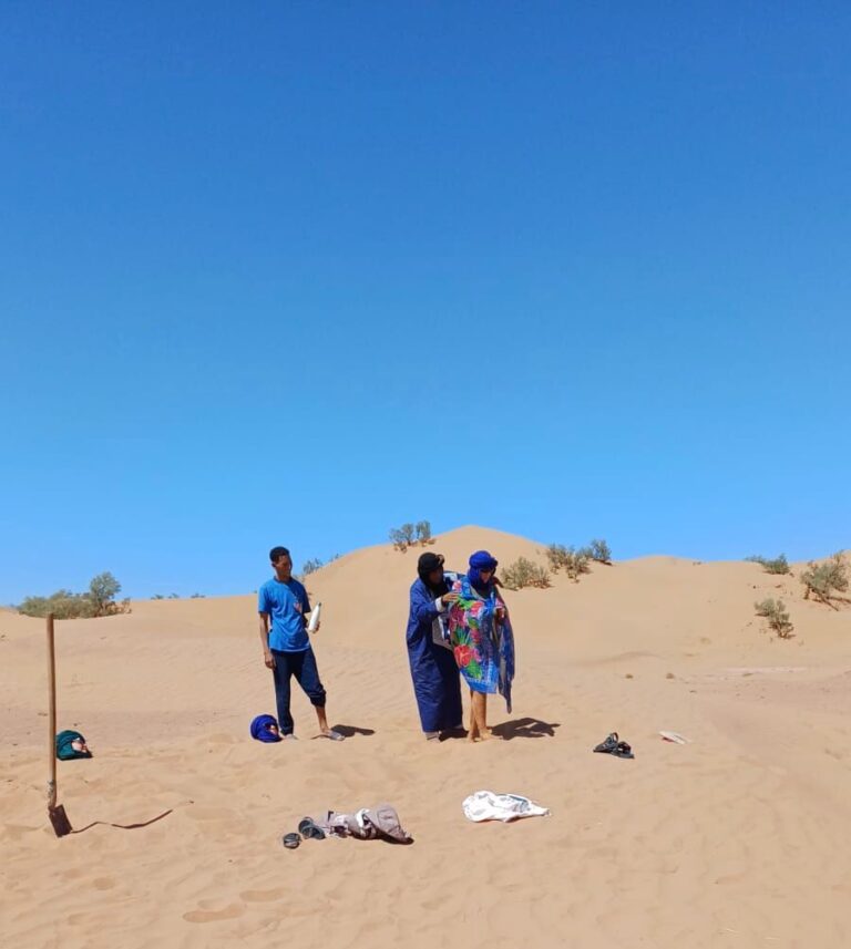 Les bains de sable dans le désert marocain ne sont pas seulement un rituel thérapeutique, ce sont des moments d’initiation. Ils relient le corps, l’esprit et la Terre dans une expérience rare, que seul le Sahara peut offrir.
