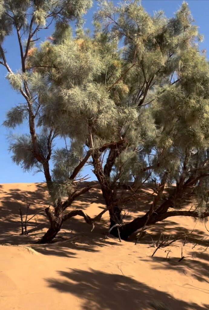 Arbre robuste, souvent planté pour fixer les sols sableux, le tamaris protège les cultures de l’avancée des dunes.