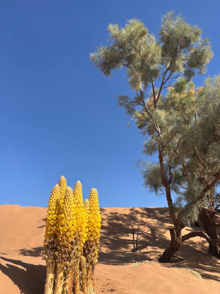Autour de M’Hamid, la flore n’est pas abondante, mais chaque plante est une leçon de résilience.
